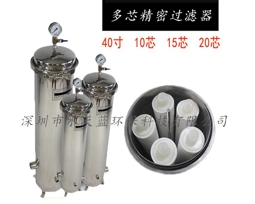 多芯精密過(guò)濾器是一種常見(jiàn)的過(guò)濾設備,可以用來(lái)過(guò)濾原水中殘存的微量懸浮顆粒、膠體、微生物等,隨著(zhù)制水時(shí)間的增長(cháng),濾芯因截留物的污染,其運行阻力逐漸上升,當運行至進(jìn)出口水壓差達0.1MPa時(shí),應更換濾芯。多芯精密過(guò)濾器采用成型的濾材,在壓力的作用下,使原液通過(guò)濾材,濾渣留在管壁上,濾液透過(guò)濾材流出,最終達到過(guò)濾的目的。